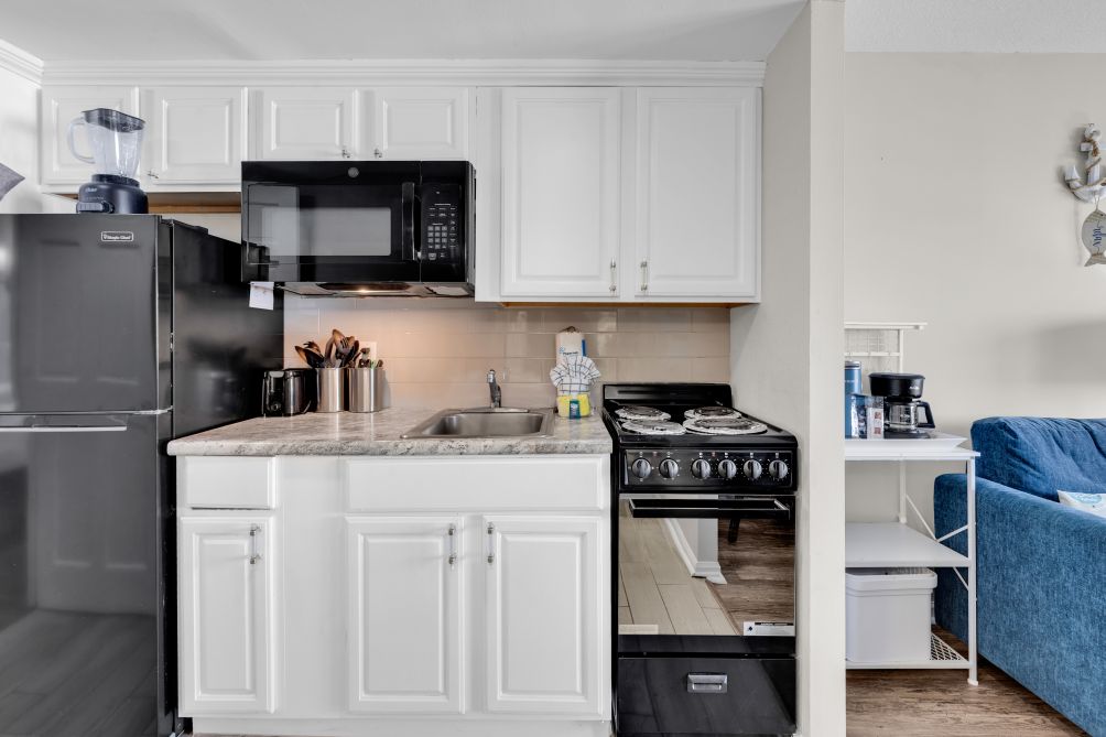 The condo includes a fully equipped kitchen with all the essentials you need to prepare meals and snacks during your stay. Unwind in the cozy living space or step outside to take in refreshing ocean breezes and scenic views.