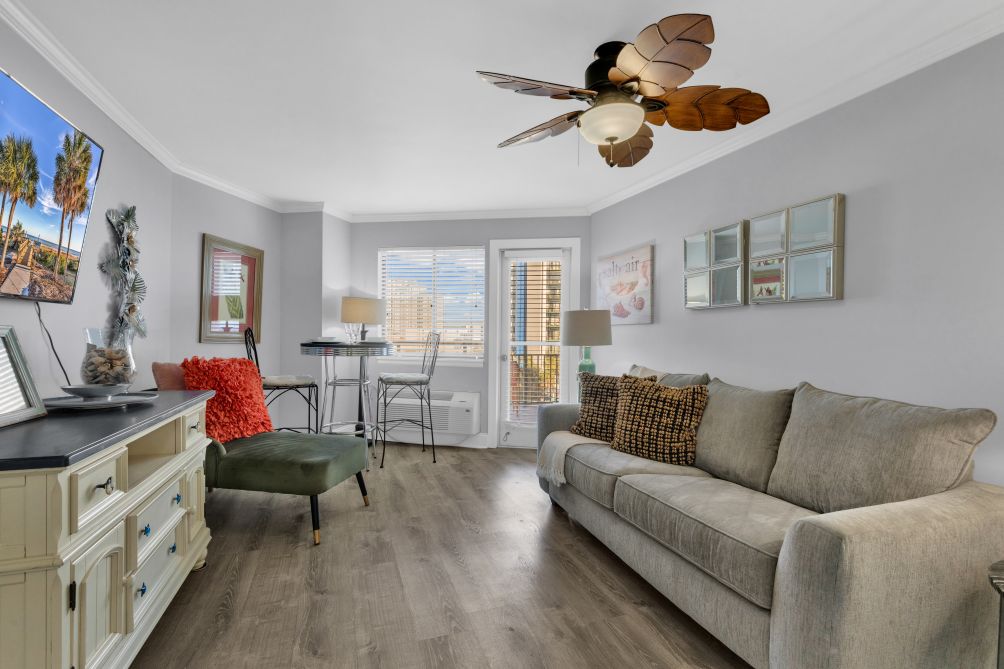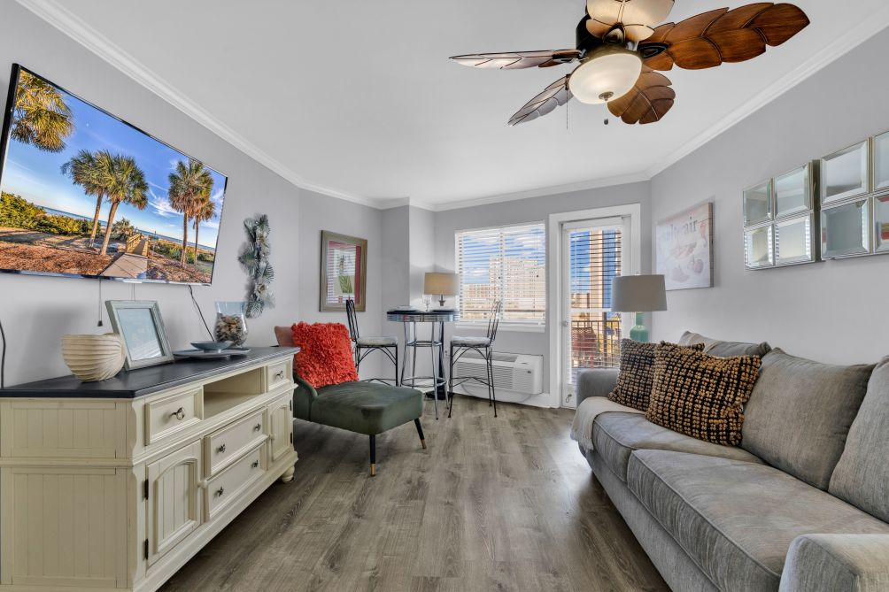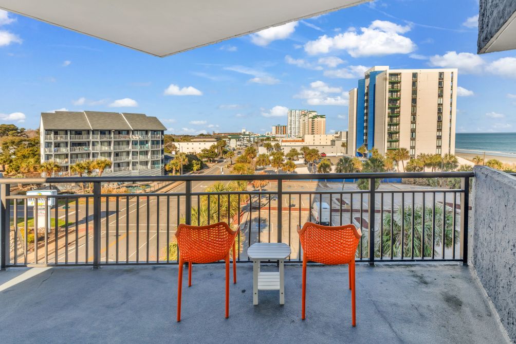 Enjoy a relaxing beachfront getaway in this partial ocean-view one-bedroom condo, ideally located in the heart of Myrtle Beach. Designed to comfortably accommodate up to four guests, the space features a well-sized bedroom, a comfortable living area, and a private balcony with lovely views of the city and ocean.